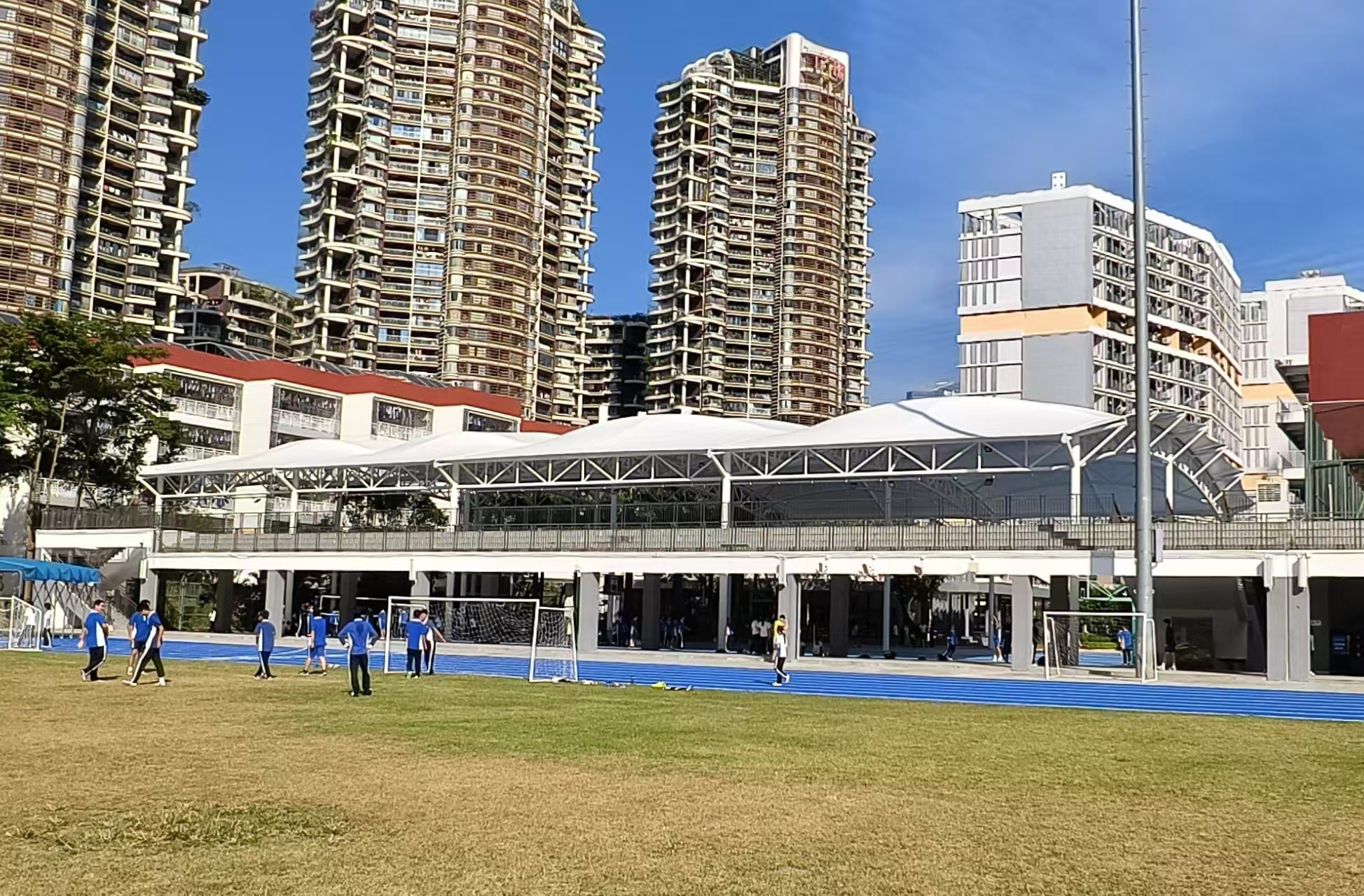 深圳市华侨城高级中学蓝球场网球场膜结构遮阳雨棚竣工